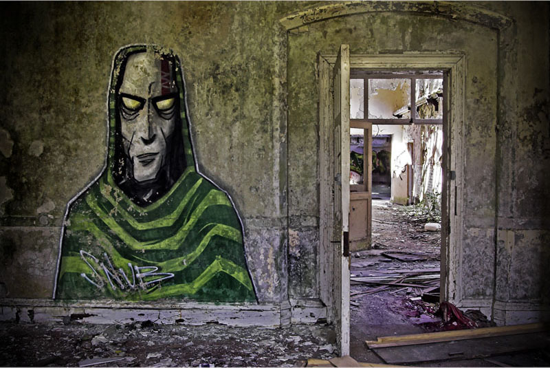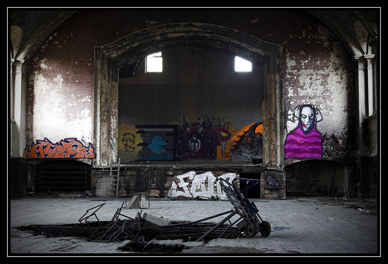 Some hate graffiti but I personally love it. I think the combination of art and dereliction tend to compliment each other very well. This room was so damp that even after just a couple months this work was already in a bad state.