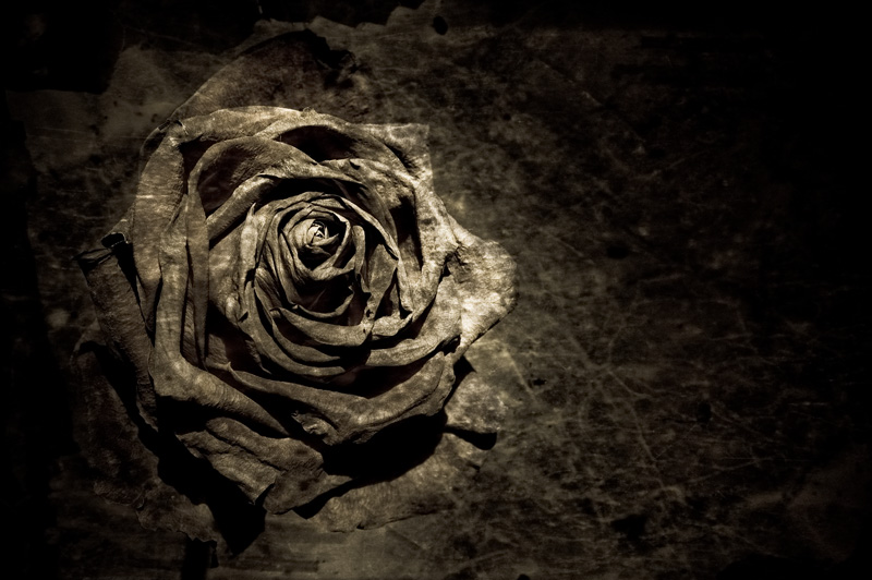 For this image I used another dirty window covered with cobwebs, only this time I overlayed it twice and in different rotations to create a backdrop for the rose. I then used the eraser tool to rub through where the rose was.