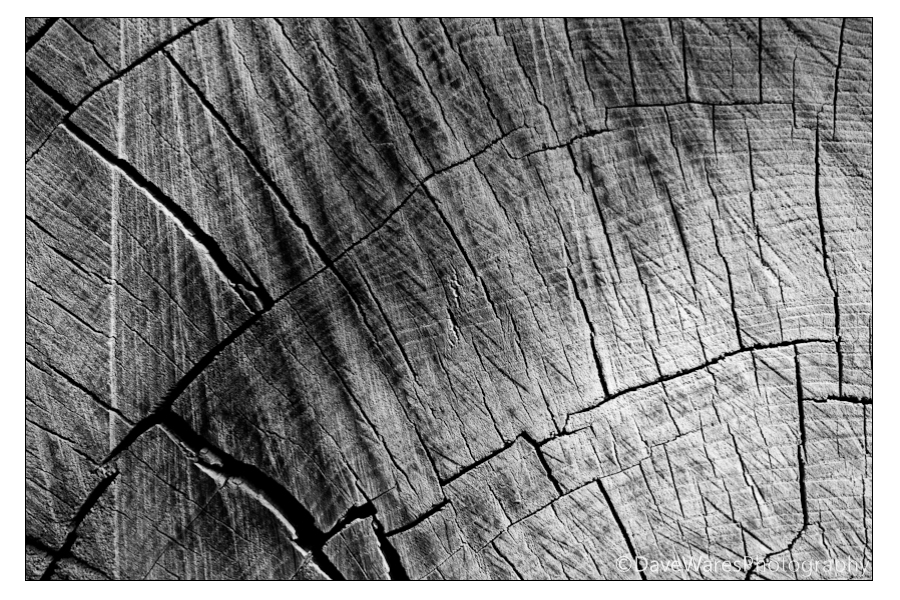 A straight forward shot today but sometime simplicity works best. As you can probably tell this is a close-up of a sawn through piece of tree trunk, but what caught my eye the most was the definition the light was having on the rings and ripples due to months of weathering. I thought that this would be a perfect candidate for black and white as even though the trunk was monotone in nature to begin with, converting it to tones of grey simplified it even further.