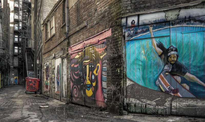 ‘Art Alley’ HDR 3exp +/-2EV ISO200 Sigma18-50mm EX f2.8. Photomatix, Lightroom and Photoshop Elements used.