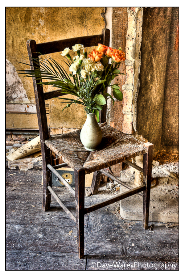 In my opinion it’s still desirable to avoid getting halos, but the main objective is to get the dark and light areas to a pretty even level. So that’s really all there is to it. What you’ll end up with is something that (to me at least) looks a lot more impressionistic. This is exactly what went through my mind when I was out on an urbex shoot last year and came across this chair, it immediately screamed of  Vincent van Gogh’s Chair and I set about doing my own take with the vase of flowers.