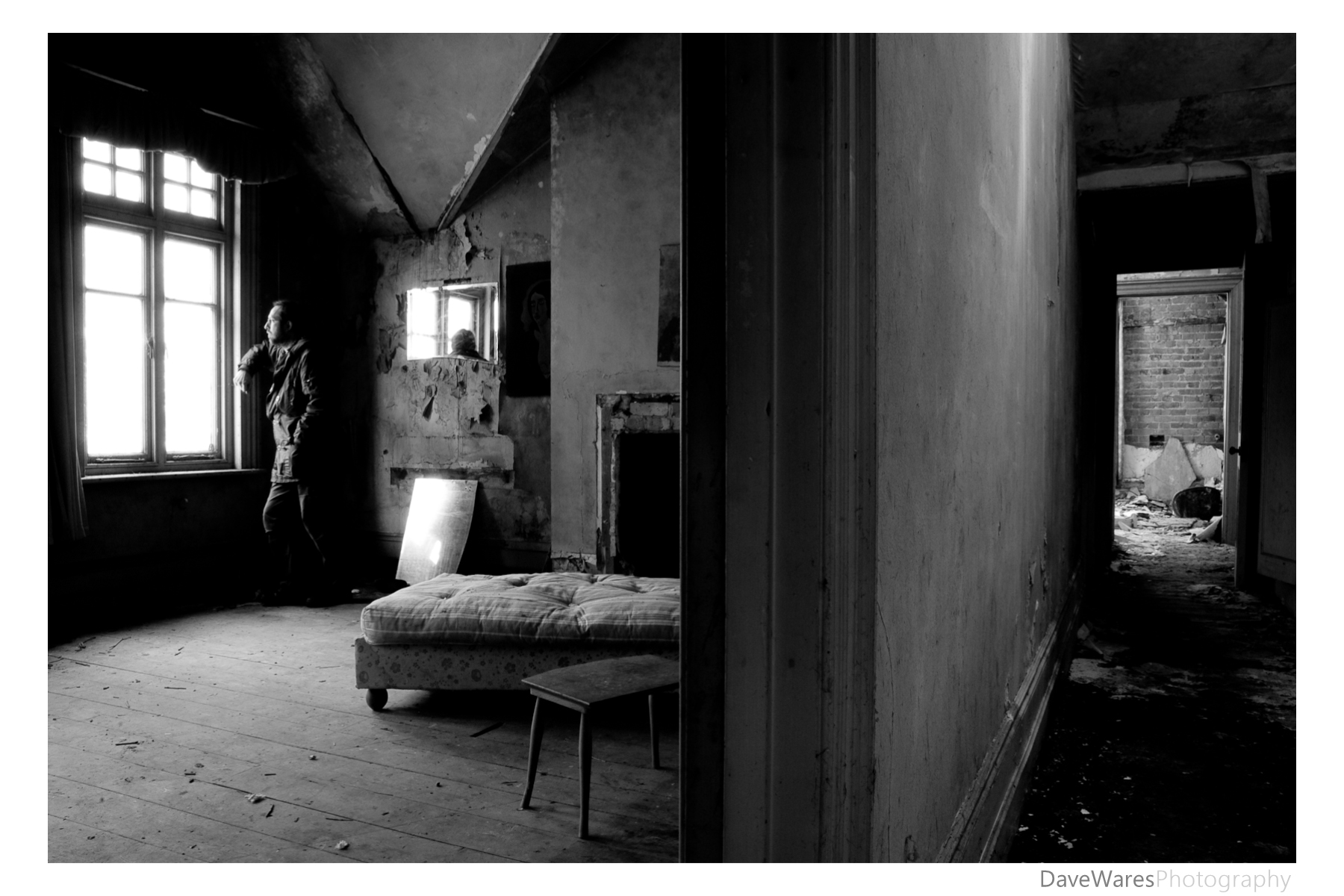 This is a shot that I’ve been sitting on for quite a while not really knowing what to do with. I originally took two shots, one with me as you see by the window, and another with me leaning against the wall in the corridor. The intention was to combine the two as a multiplicity picture, however, after a few attempts I found that it wasn’t quite working the way I had envisioned so I gave up and put the idea to one side. Approaching it a few months later with a fresh head I decided that using just one of the shots in black and white would suit the scene better. Perhaps having all this technology at our fingertips can sometimes cloud our judgement. Taking a more straight forward approach every now and then could possibly result at a better solution.