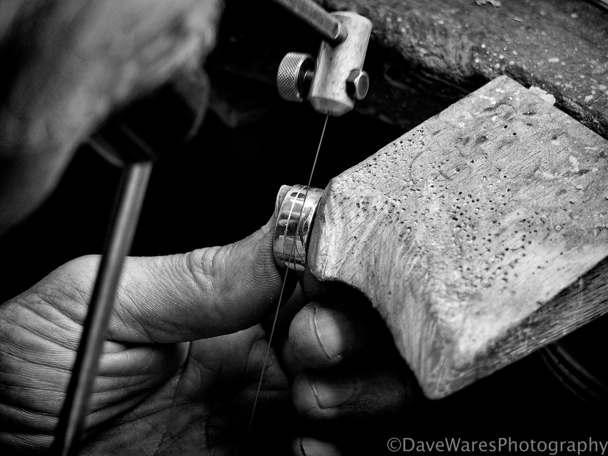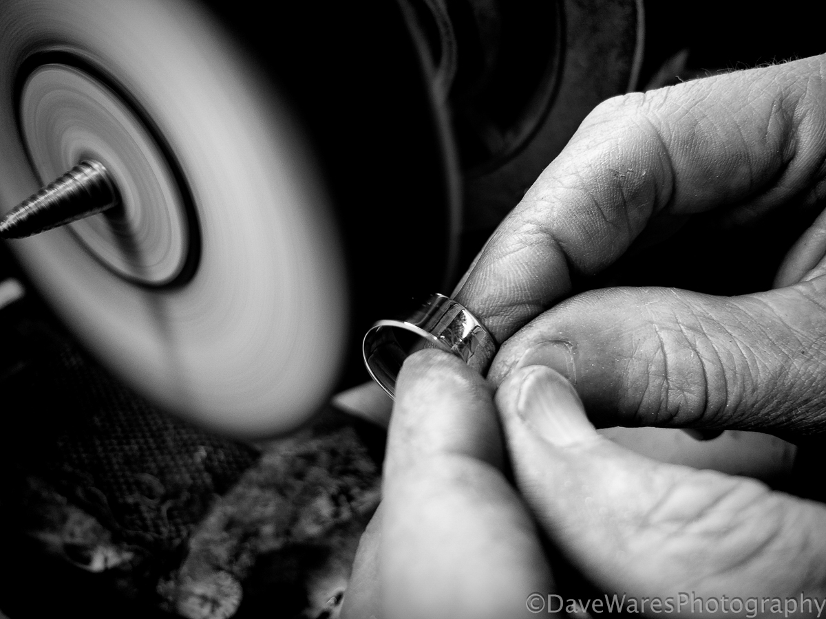 Adding the final detail. The ring was then given a final polish and the white band was rhodium plated.
