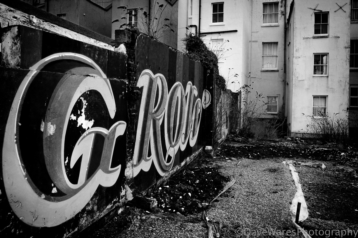 I believe this site was temporarily used as an allotment and the reason for the word grow being on the fence, rather than it being just some random word someone decided to paint. The site now lays empty.