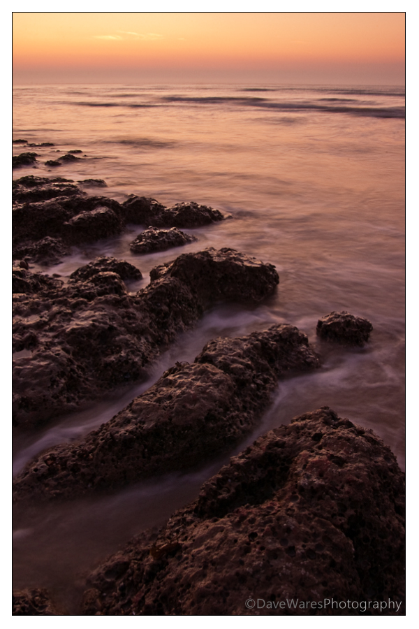 Having tried a few different compositions I headed out to the waters edge in an attempt to get some misty water action, but alas the tide (once again) was too calm. Due to the increase in light my exposures were rapidly getting shorter and by the time I found this group of rocks I was lucky if I got a couple of seconds at f22.