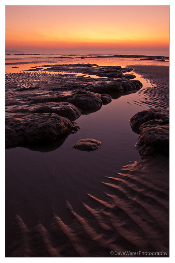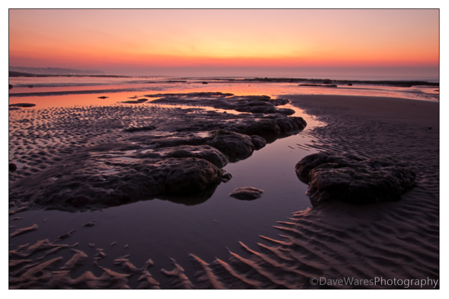 Yes, your truly managed to pull himself out of bed for another mornings shoot. This time I wanted to make some images at a stretch of beach between Hastings and Bexhill, having passed this beach many times on the train and seeing the large amount of rock exposed while the tide is out I had to make a visit. Once again the sky was too clear for my liking but this was not that much of a problem as there was more than enough going on in the foreground. I arrived at the beach while it was still dark to give me plenty of time to look for the best spot, and just as it was starting to get light I happened upon this area, where there was a nice mix of rock, sand ripples and water. Happy with my location I went about trying to find the best composition.
